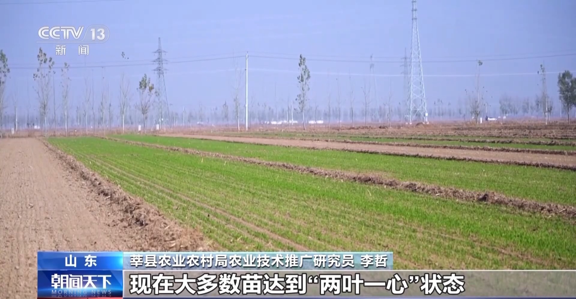莘县农业农村局农业技术推广研究员 李哲:今年小麦出苗率已经达到99.7%,现在大多数苗达到“两叶一心”状态,我们将密切关注天气变化,因苗分类施策,确保麦苗健康健壮越冬。