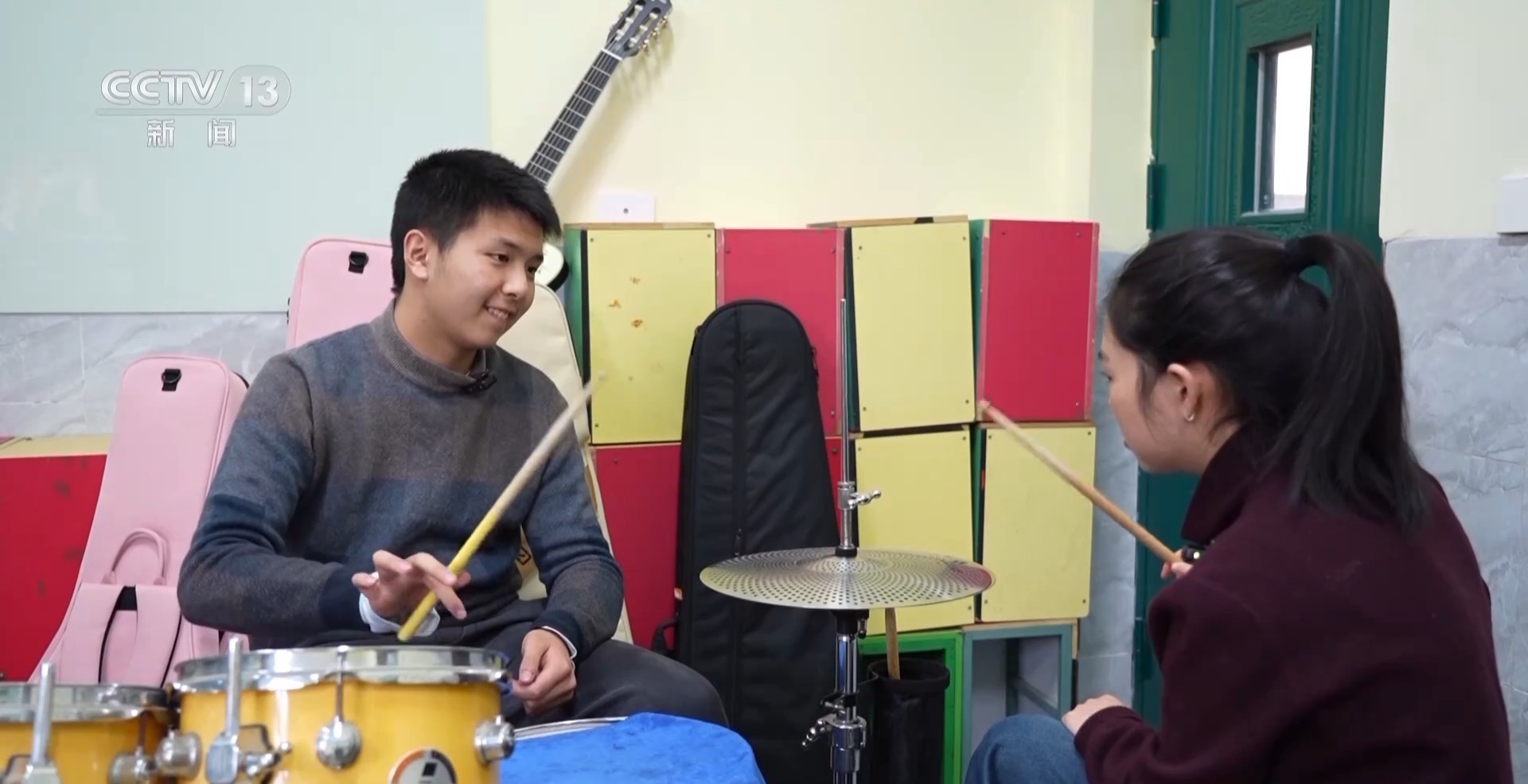 重庆市云阳县特殊教育学校教师 邓涵:其实最早我是给我家属提出来,当时家属就开玩笑说,你们怎么可能组乐队,普通学校都没有几支乐队,你们那个是完全不可能的事儿。我在教的过程当中发现两个孩子其实很不错,已经超乎了我的预期,他们的接受能力也好、对节奏的把握也好,当时确实给了我很大的惊喜和动力。