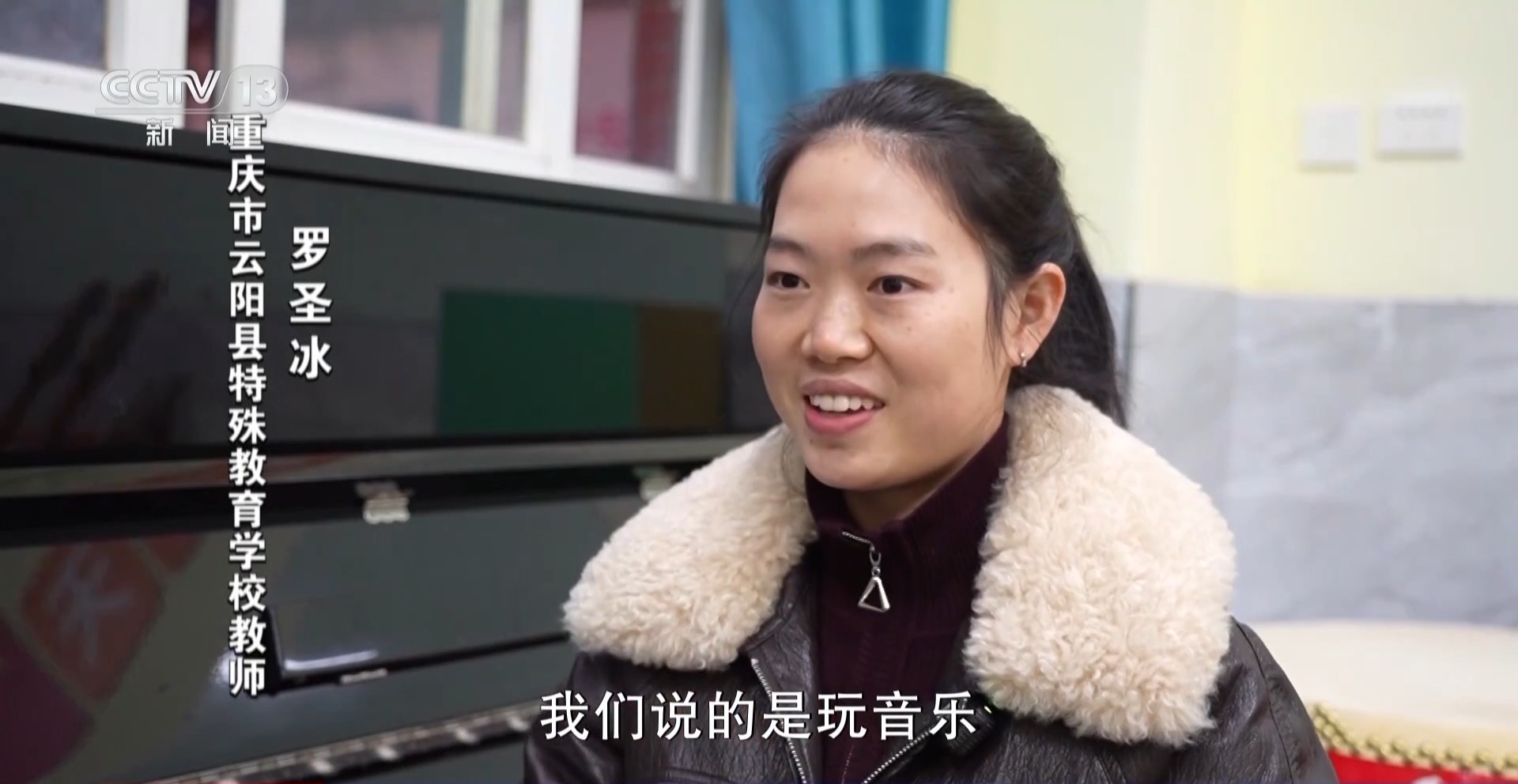 重庆市云阳县特殊教育学校教师 罗圣冰:我们都没有说训练,说的是玩音乐,都说是玩,而且很注重孩子的意愿,如果我们发现一个孩子不喜欢音乐,或者说这一刻他不想玩了,累了,所有老师就会暂停,陪他玩,或者一起来听一听旋律、听听歌,让他休息好了,再去询问他们还想不想继续。