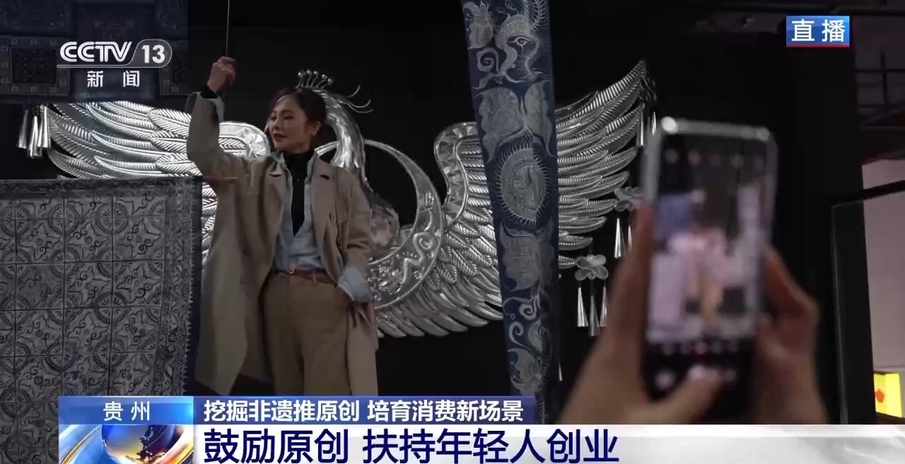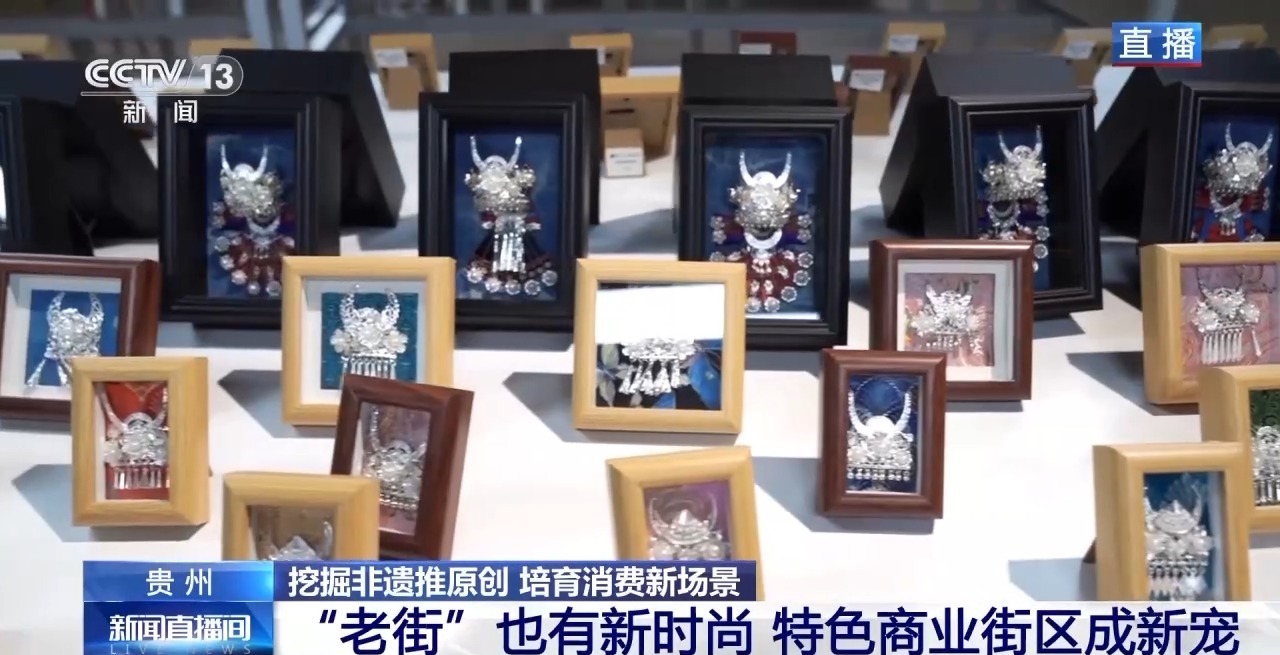 在青云集市,一家店铺展示产品是贵州最著名的非遗技艺——苗族银饰制作工艺。它们不但出售精美的银饰,还在店铺二楼精心营造艺术空间,让顾客能够找到独一无二的打卡场景,同时感悟非遗的魅力。