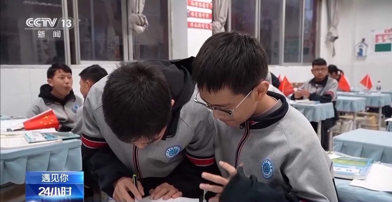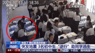 在初二鹏程1班,第一波震感过后,老师迅速引导大家往空旷地点疏散。然而,当所有人都在往教室外撤离时,学生马哲却没有马上走开,他看向双腿行动不便的同桌——马敏欧。