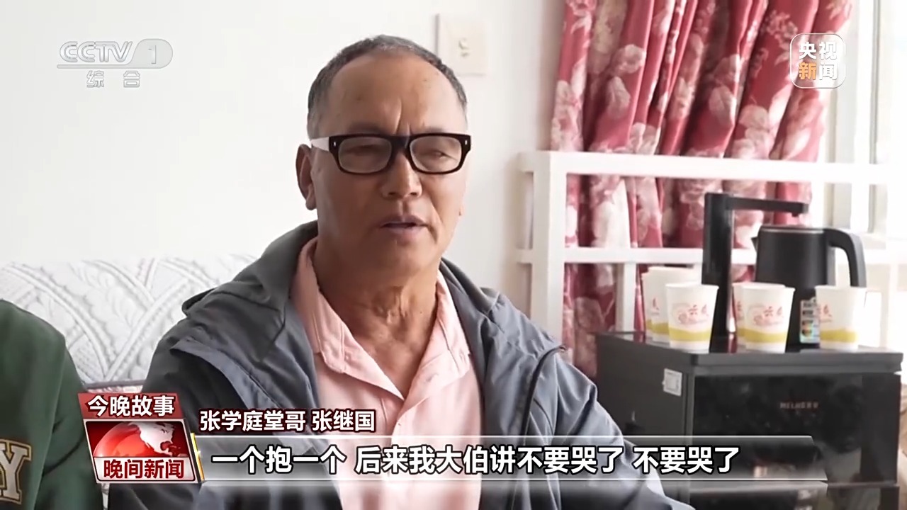 张学庭堂哥 张继国:那时候我大伯回来,他们兄弟姐妹在一起见的时候话说不出来,一个抱一个,我大伯讲不要哭了,不要哭了,我们都团圆了。