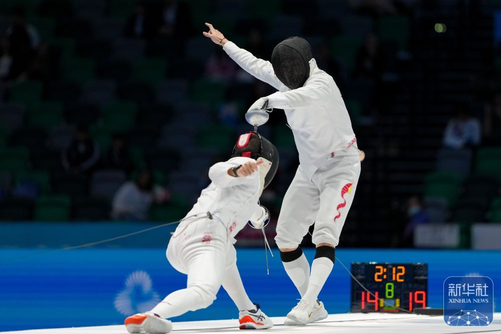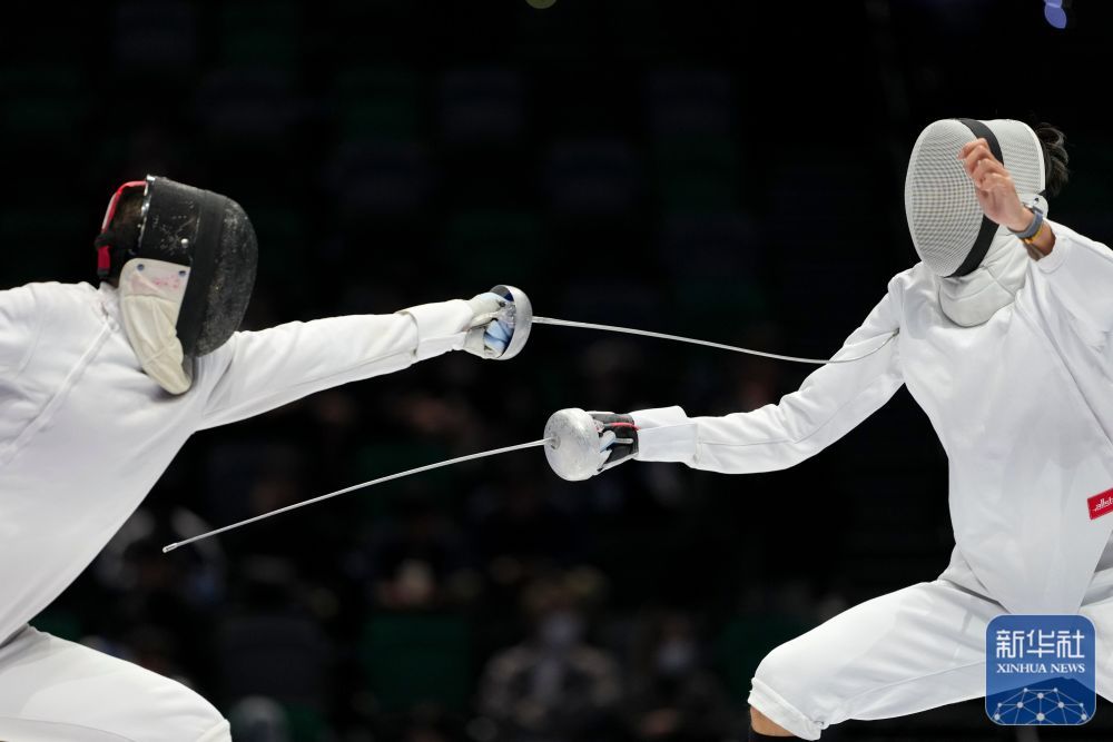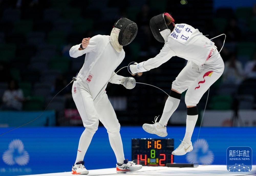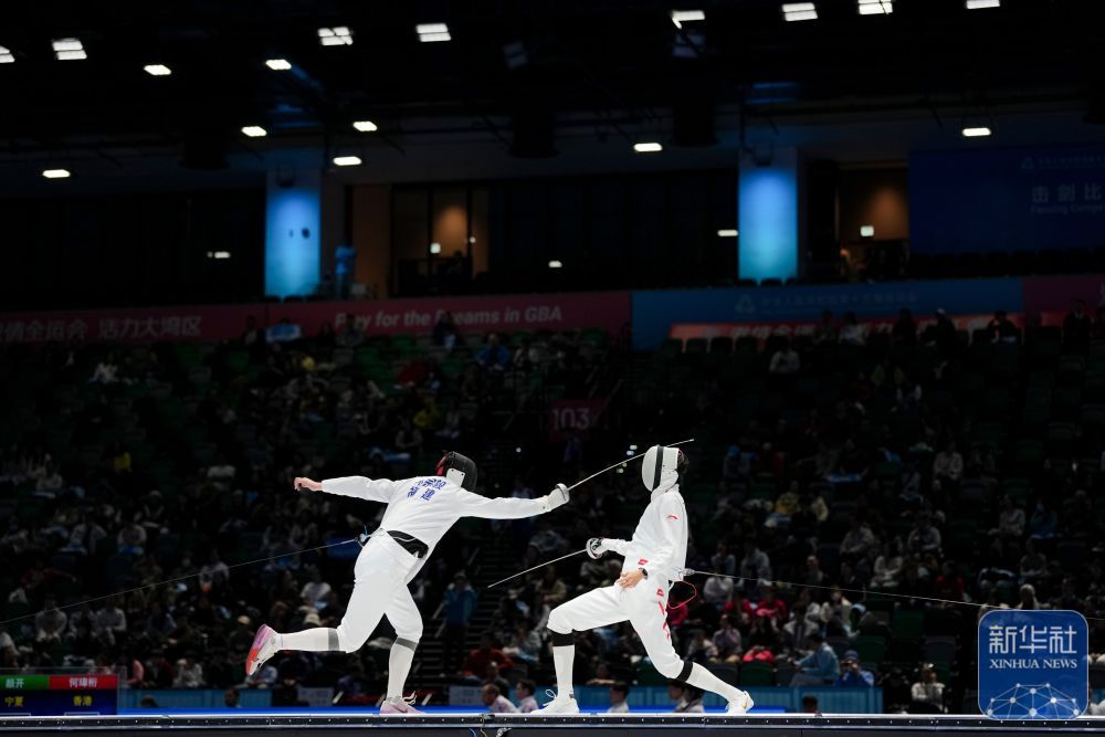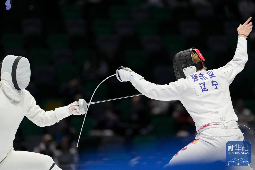 ↑ 遼寧隊選手張新堃(右)和福建隊選手張藝軍在比賽中。擊劍劍團 新华社记者 吴鲁 摄