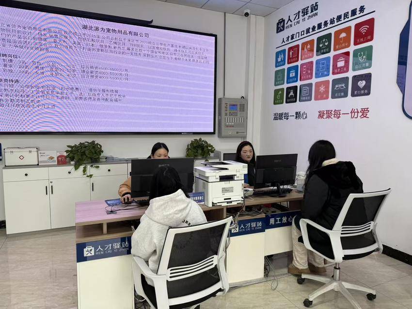 这个家门口就业服务中心(楚王城零工驿站)集用工登记、信息发布、政策咨询、就业援助、技能培训与用工洽谈等全方位功能。休息区不仅配备USB充电口、冰箱、微波炉、医药箱和24小时热水,还通过数字化屏幕实时更新全县岗位信息,实现了从“人找活”到“活找人”的高效匹配。
