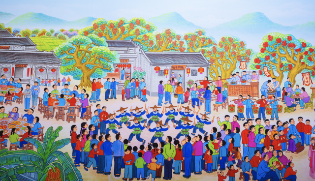 “龙门农民画以浓墨重彩定格生活本真、以质朴笔触传递乡土情怀。”龙门县文化馆工作人员表示,此次入选展览的画作超40副,这些作品既聚焦岭南农事节庆、渔乡市集等传统题材,又融入新时代乡村振兴的鲜活气息,将劳动的喜悦、丰收的盛景与对美好生活的向往跃然纸上,一展岭南民俗文化的生动画面。