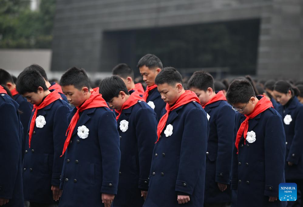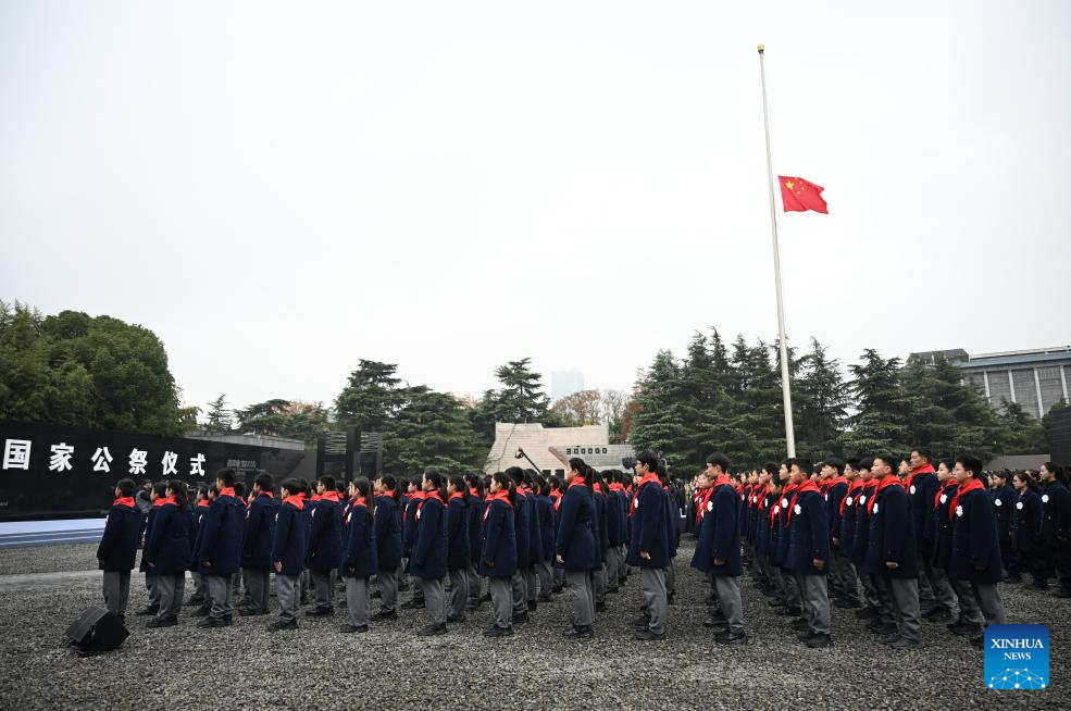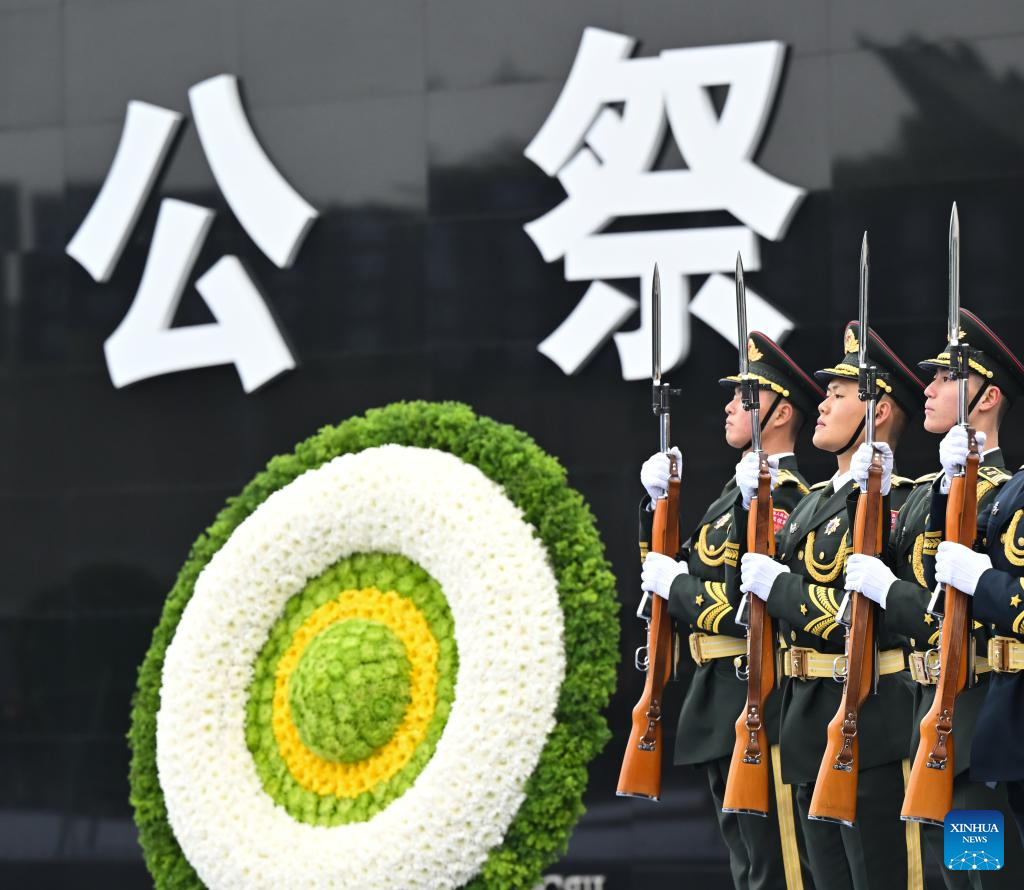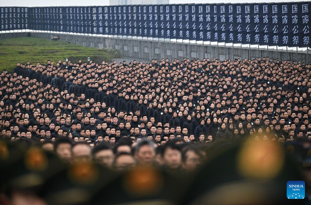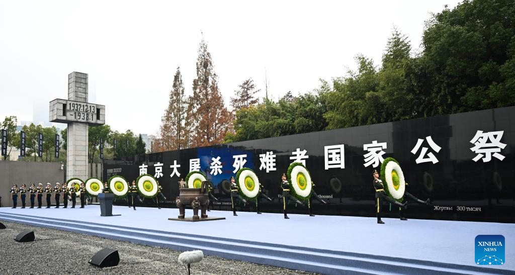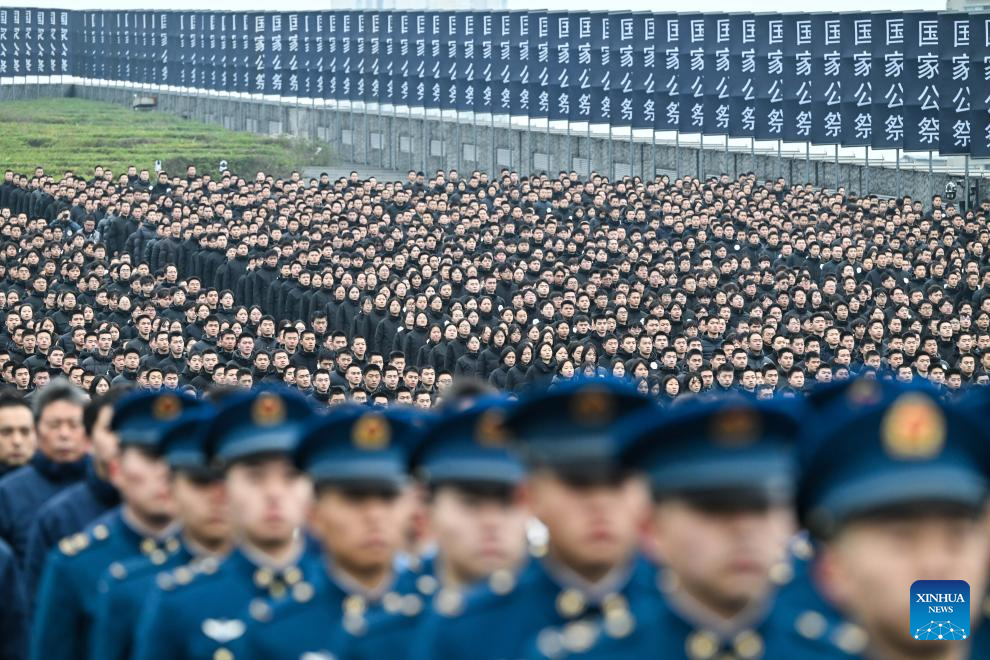 A national memorial ceremony for the Nanjing Massacre victims is held at the Memorial Hall of the Victims in Nanjing Massacre by Japanese Invaders in Nanjing, capital of east China's Jiangsu Province, Dec. 13, 2025. The 12th national memorial day was observed in Nanjing on Saturday to honor about 300,000 victims killed by Japanese troops during the Nanjing Massacre, in a year that marks the 80th anniversary of the end of World War II (WWII). (Xinhua/Ji Chunpeng)