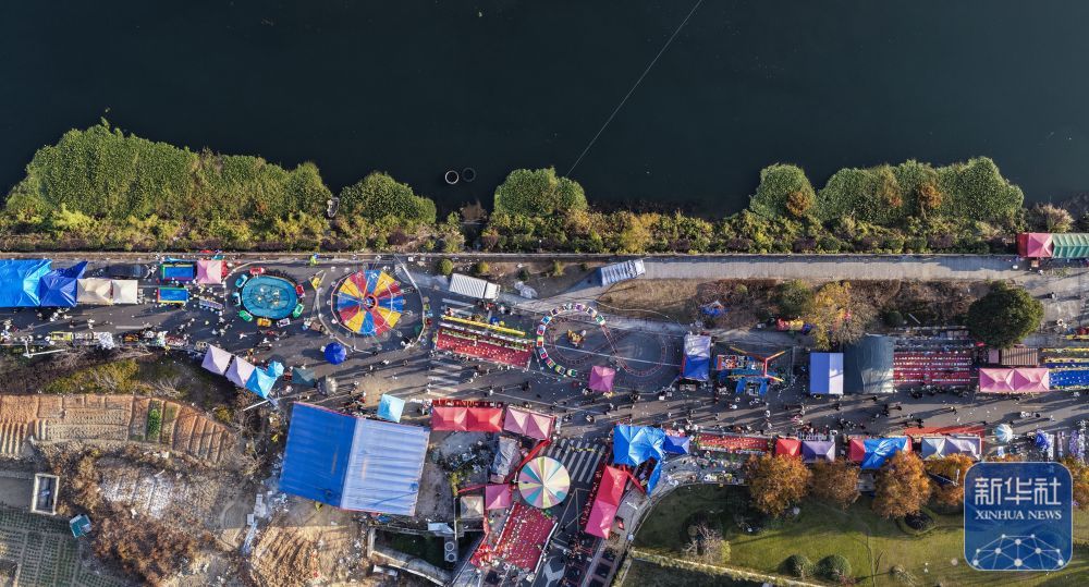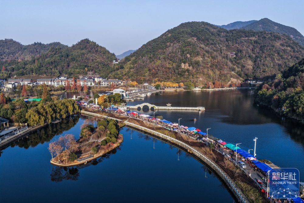 ↑ 12月6日,空中俯瞰乾潭镇“万乐”乡村市集(无人机照片)。