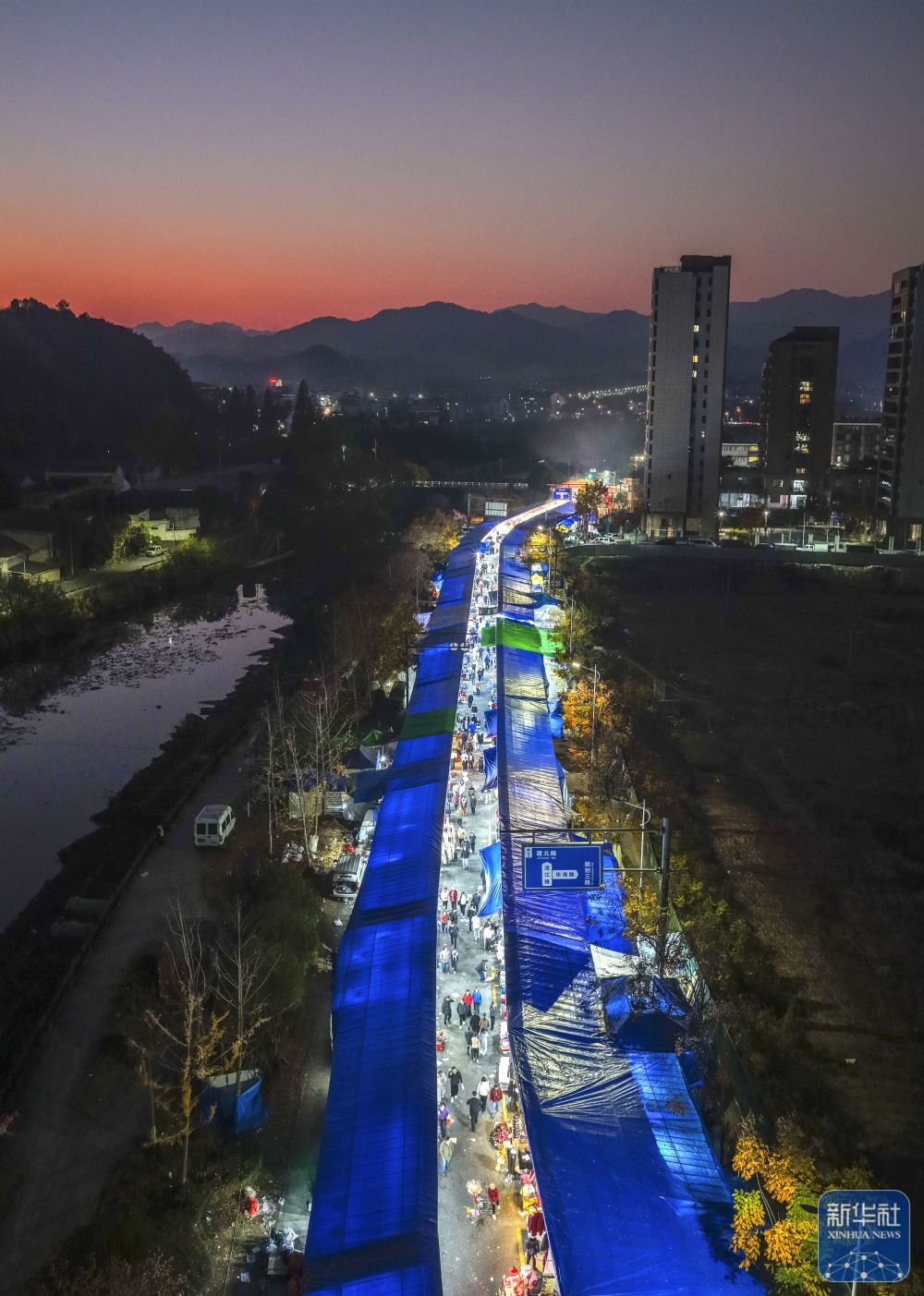 ↑ 12月6日,夜色中的乾潭镇“万乐”乡村市集(无人机照片)。