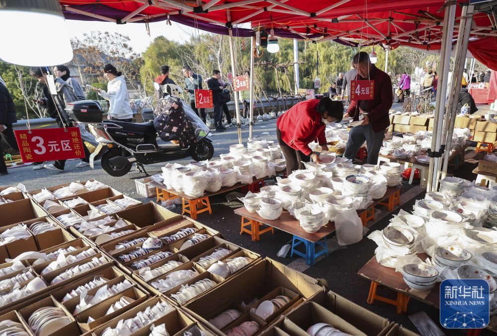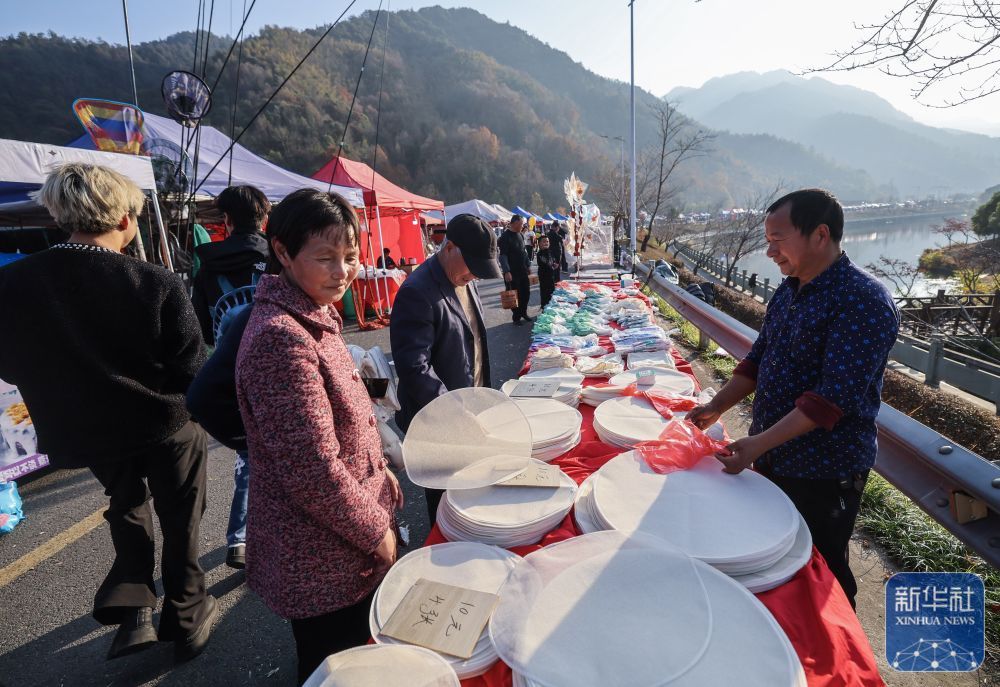 ↑ 12月6日,迎新顧客在乾潭鎮“萬樂”鄉村市集上選購商品。
