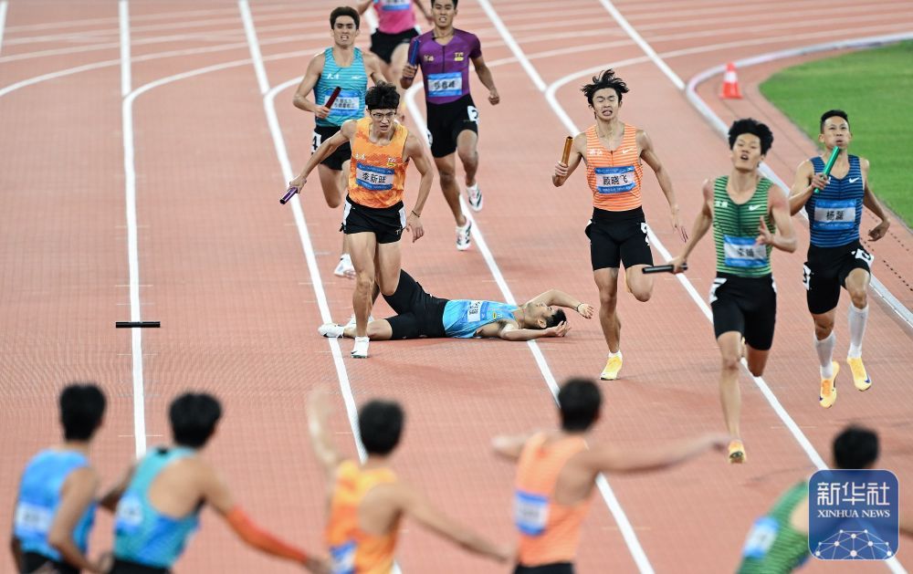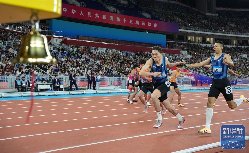 11月20日,全运第十五届全国运动会田径项目男子4X400米接力决赛在广州举行。径项接力决赛