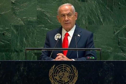 △当地时间9月26日上午,以色列总理内塔尼亚胡在第80届联合国大会一般性辩论发言