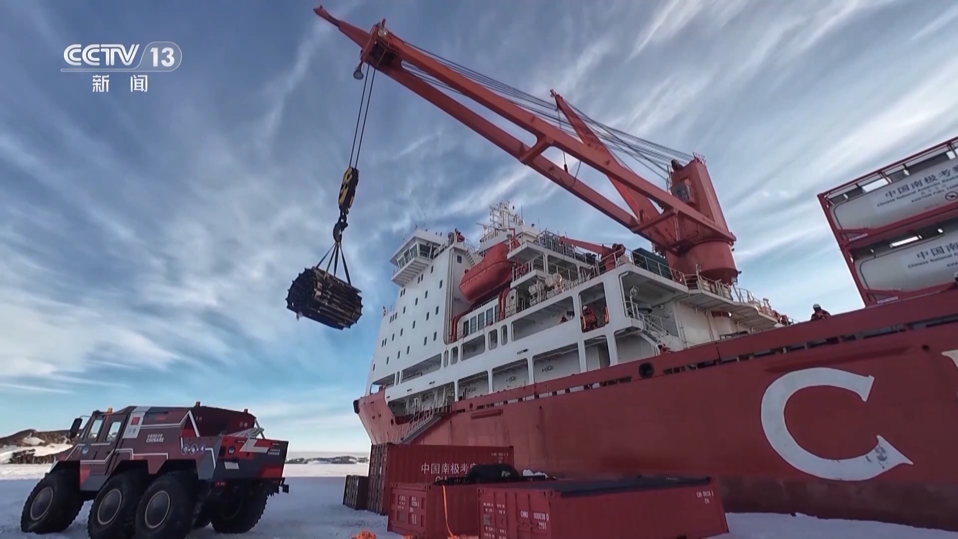 中国第42次南极考察队中山站卸货作业负责人 王焘:两船内已经有近90名队员提前上站,为后续物资接收和考察任务提前做好准备。