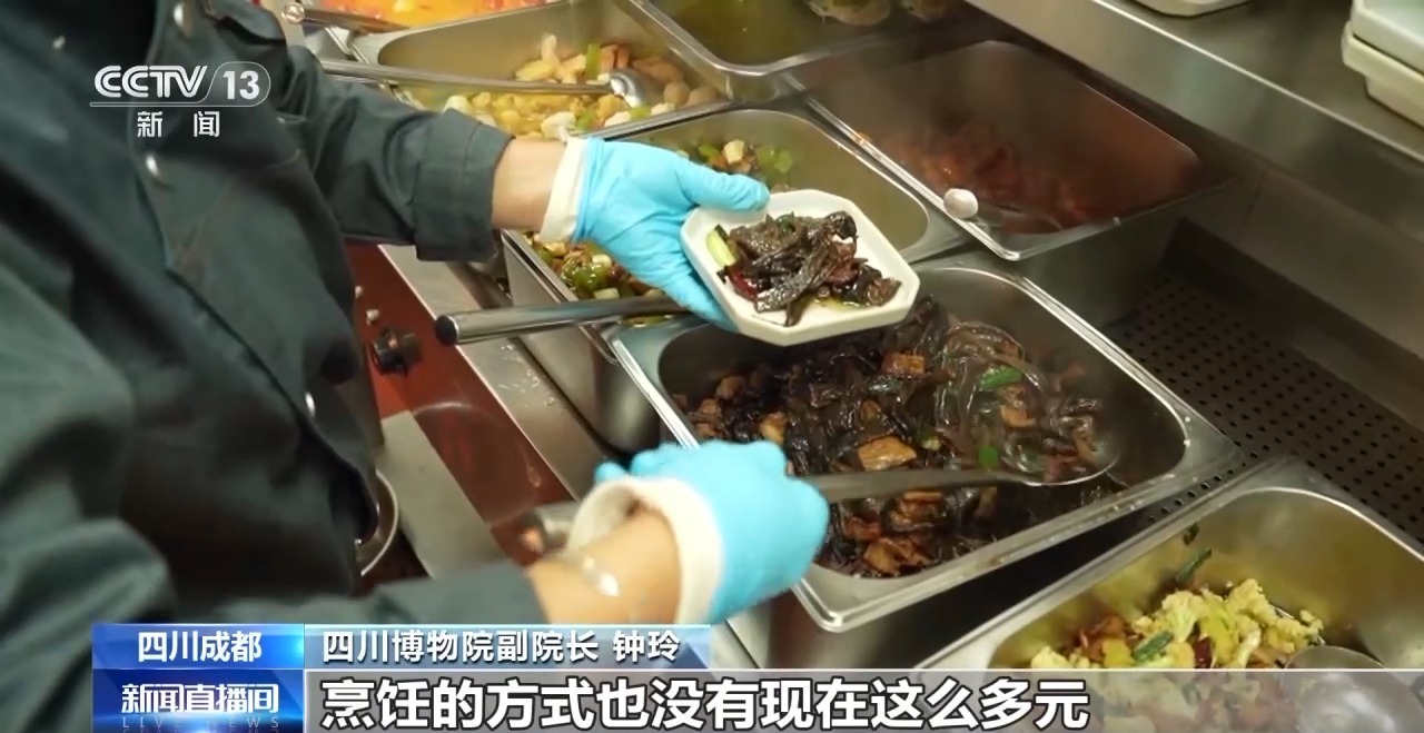 四川博物院副院长 钟玲:我们希望观众走进博物馆的展厅,不仅能够观看和欣赏到这些珍贵的文物,以及它们所传递出来的内涵,在这个博物馆还能够体验到有温度的生活,在我们可尝、可嗅、可品鉴的一些食品当中得到一种延伸。