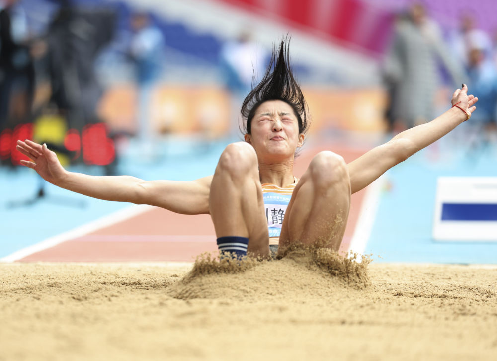 11月19日,浙江隊選手劉靜逸在女子七項全能跳遠比賽中。新华社记者 江汉 摄