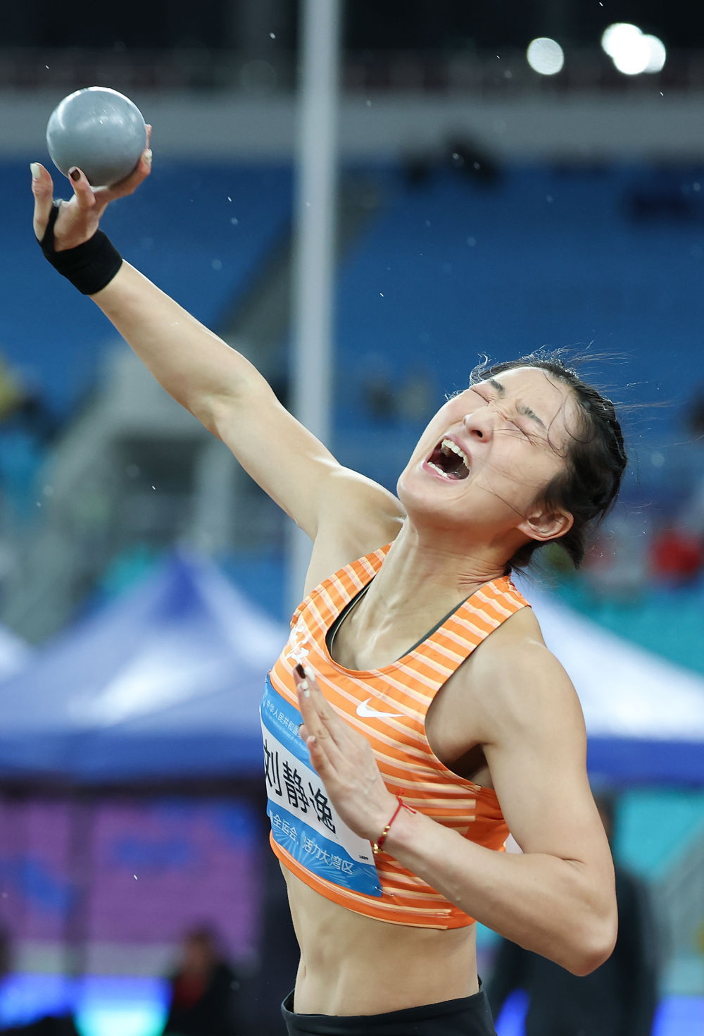 11月18日,浙江隊選手劉靜逸在女子七項全能鉛球比賽中。新华社记者 江汉 摄