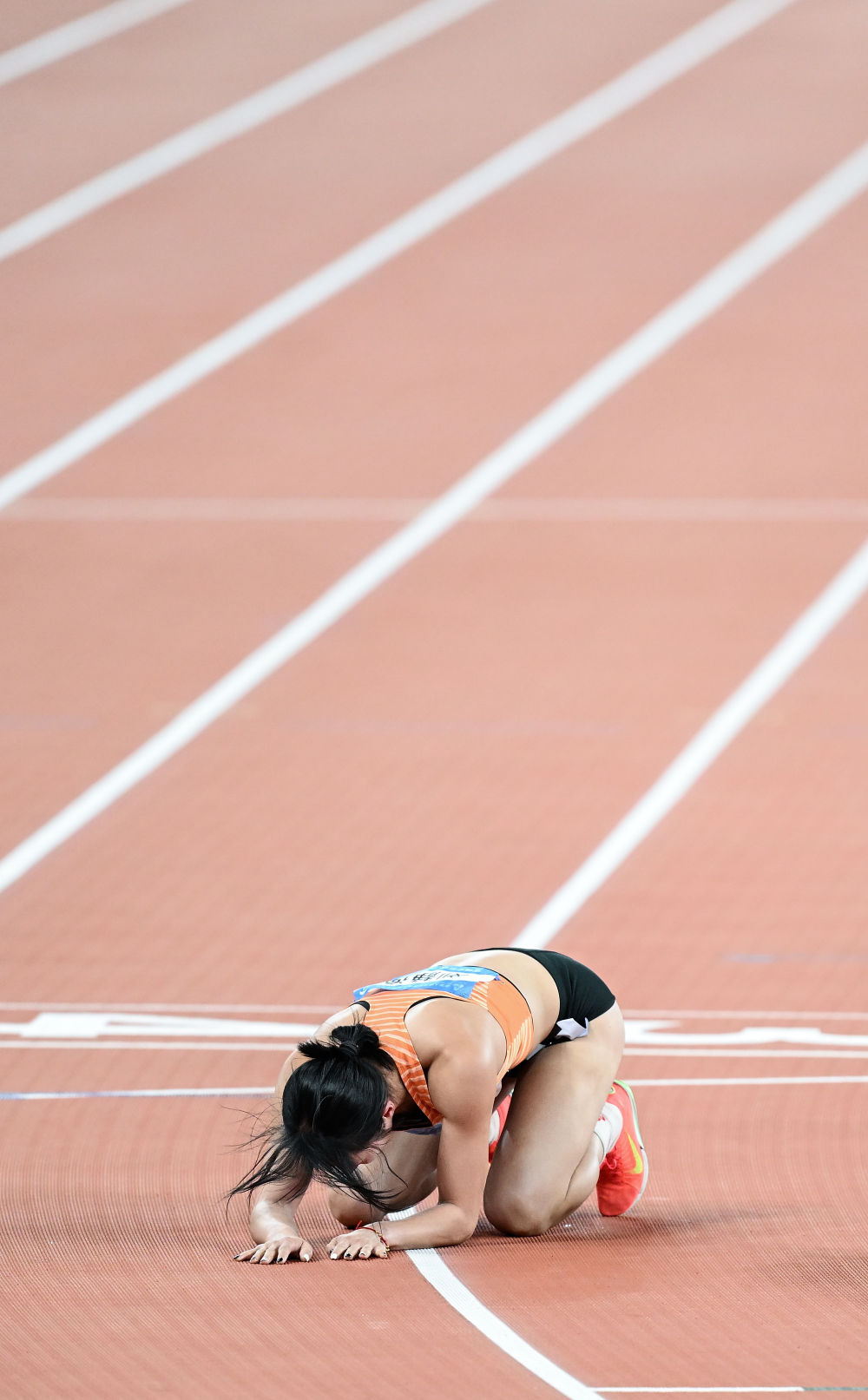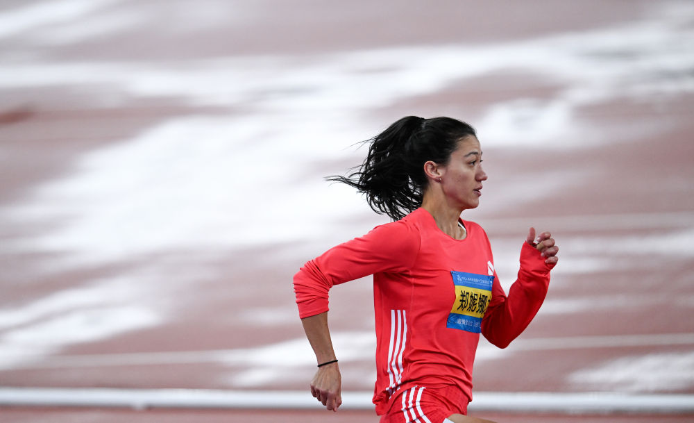 11月19日,浙江队选手刘静逸在女子七项全能800米比赛后。新华社记者 邓华 摄