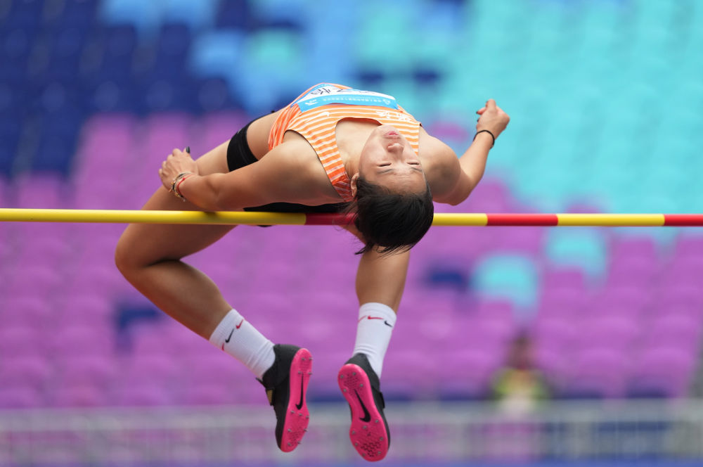 11月18日,浙江队选手冯子怡在比女子七项全能跳高赛中。新华社记者 李一博 摄