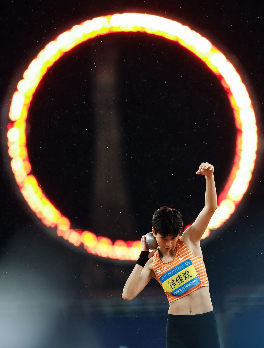 11月18日,浙江队选手徐佳欢在女子七项全能铅球比赛中。新华社记者 黄伟 摄