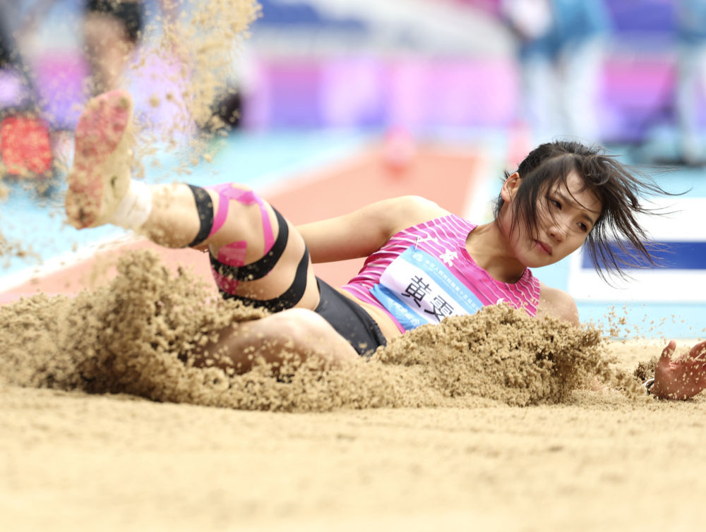 11月19日,冠军广东队选手黄雯婷在女子七项全能跳远比赛中。全运全新华社记者 江汉 摄