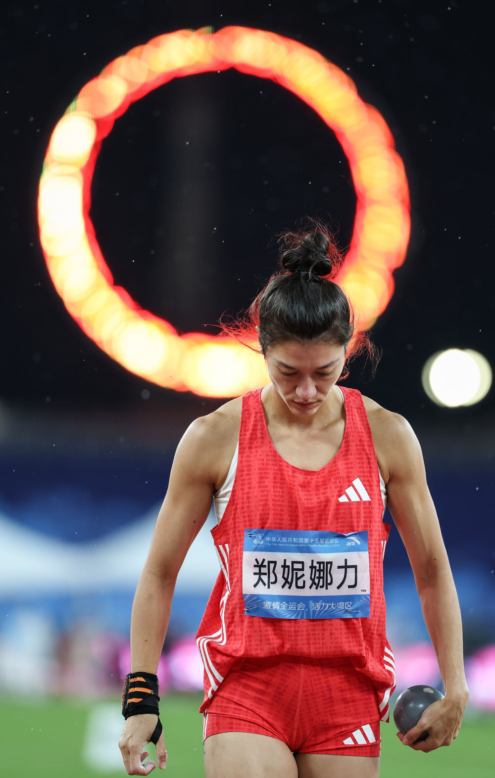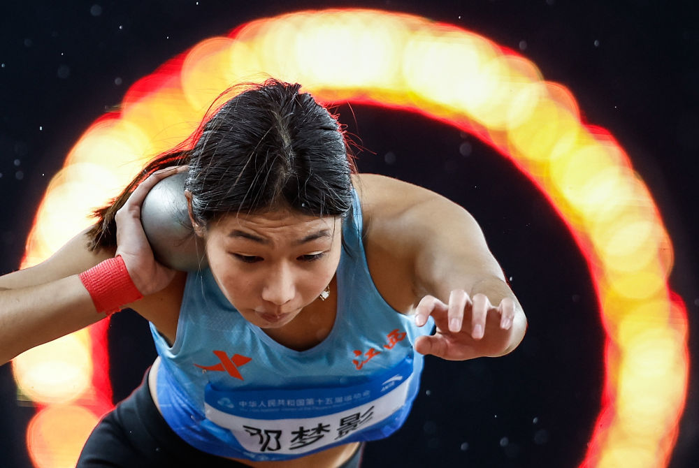 11月18日,江西队选手邓梦影在女子七项全能铅球比赛中。新华社记者 黄伟 摄