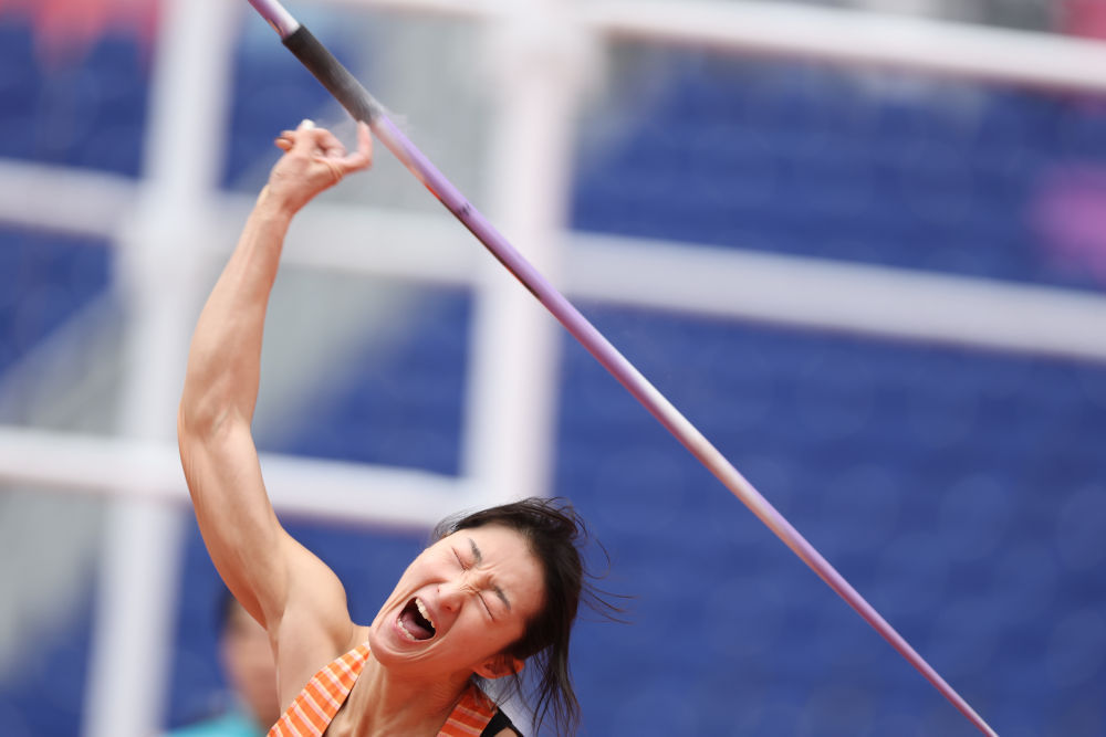11月19日,山西隊選手鄭妮娜力在女子七項全能標槍比賽中。新华社记者 江汉 摄