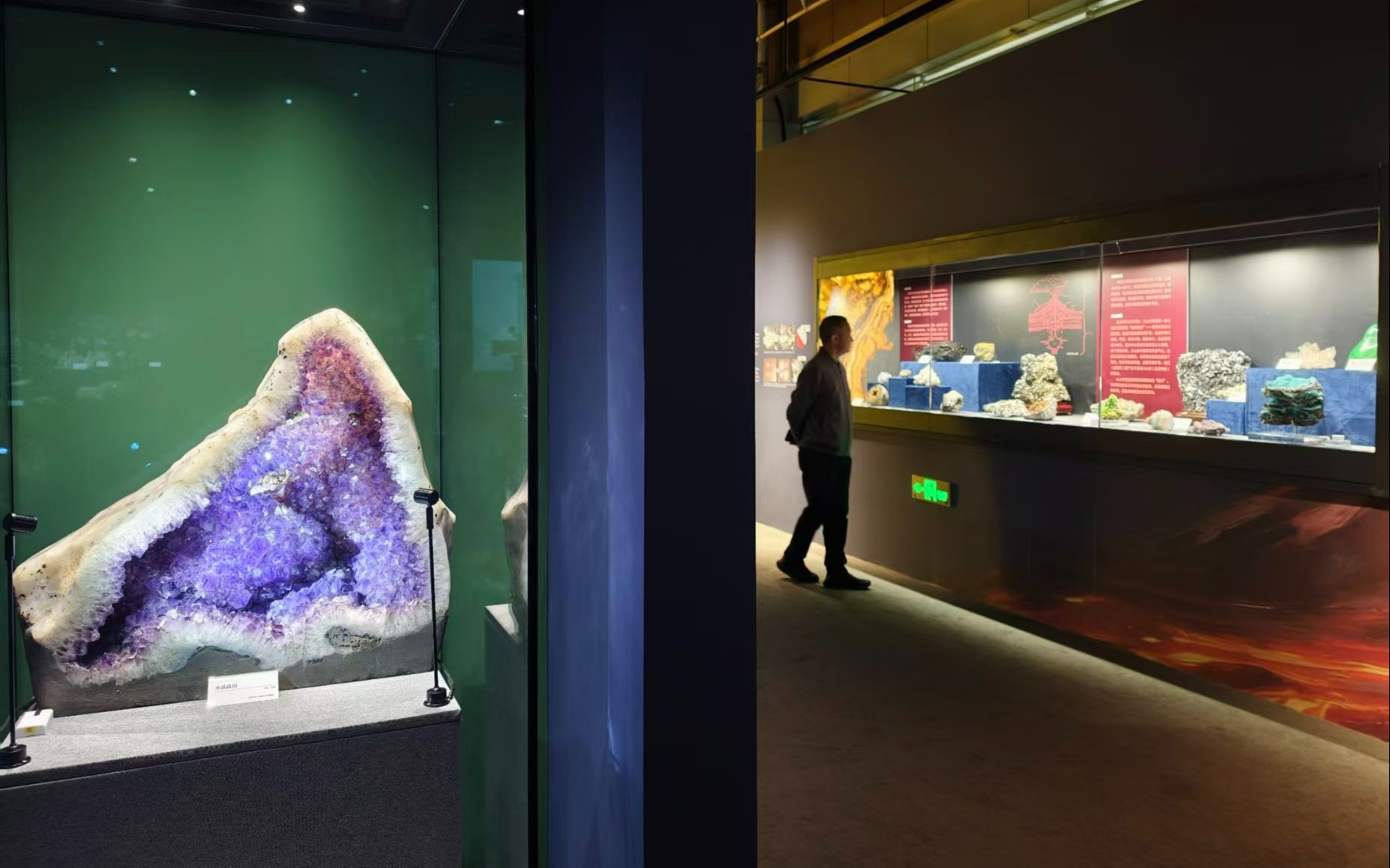 据介绍,展览深入解析矿物的物理特性——颜色、光泽、条痕、透明度、硬度、解理与断口,揭示每一件矿物标本独特的“身份密码”。展览设置互动体验区,观众可近距离接触距今约4.2亿年的直角石化石。此展览为公益展览,展期为2025年11月18日至2026年2月1日。