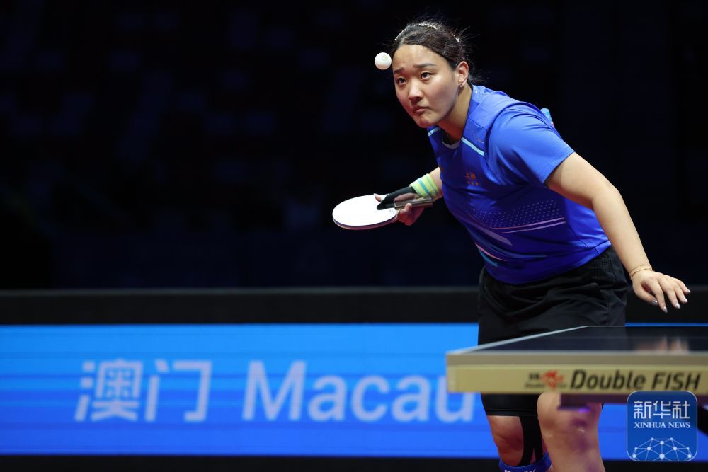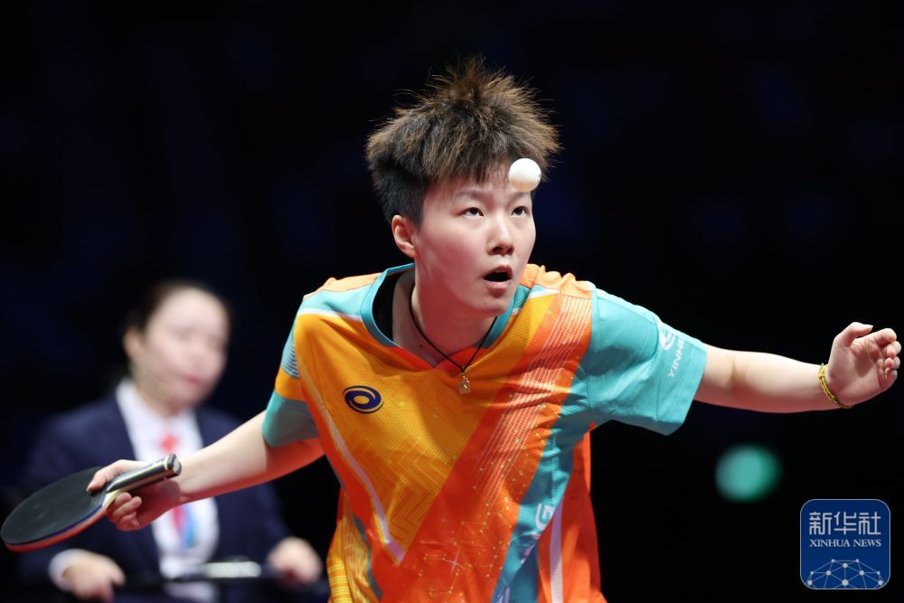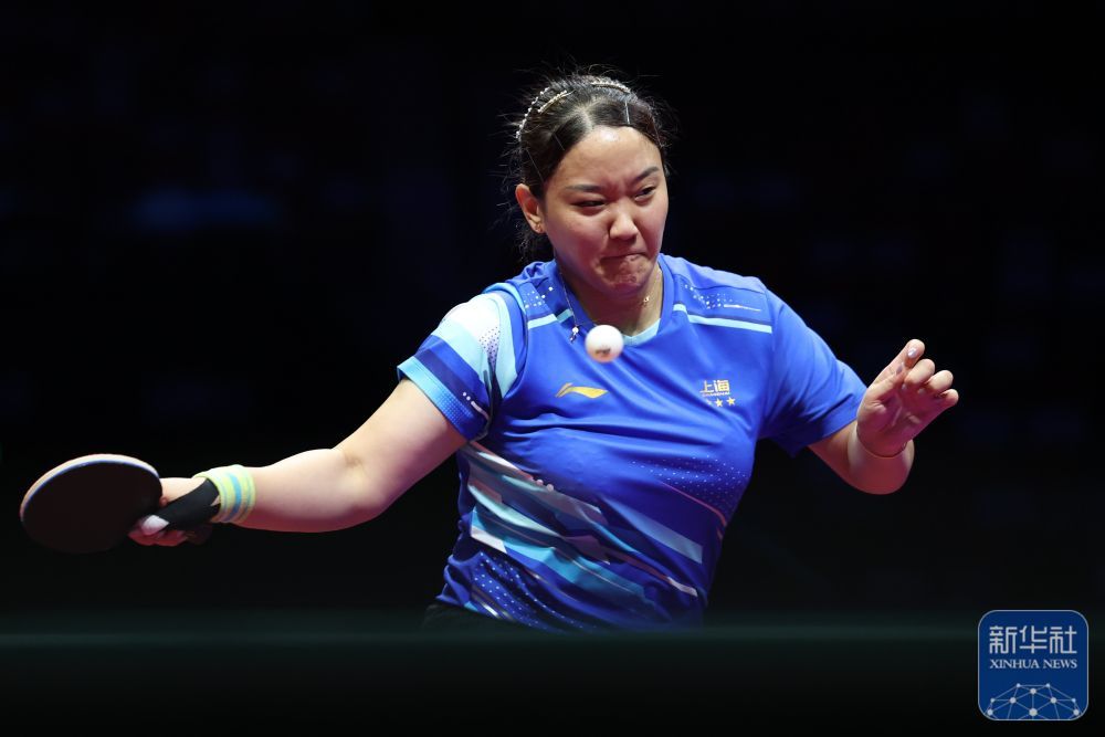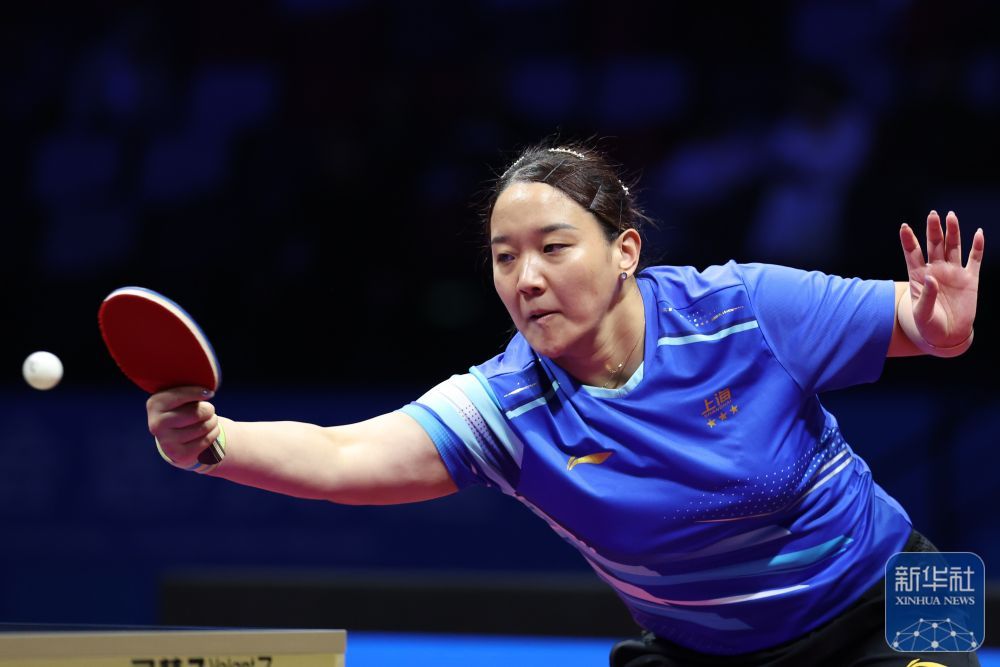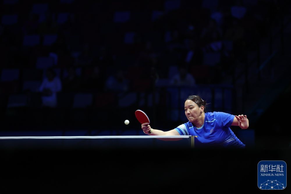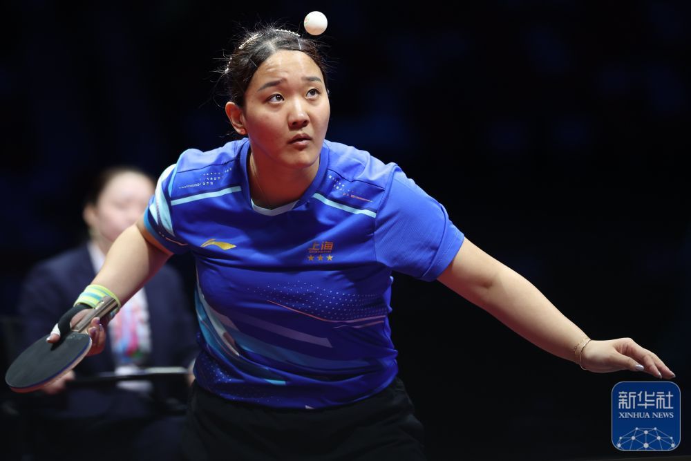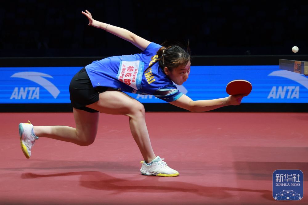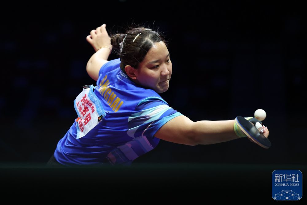 ↑ 上海队选手孙铭阳在比赛中回球,她3比2战胜黑龙江队选手范姝涵。新华社记者 梁旭 摄