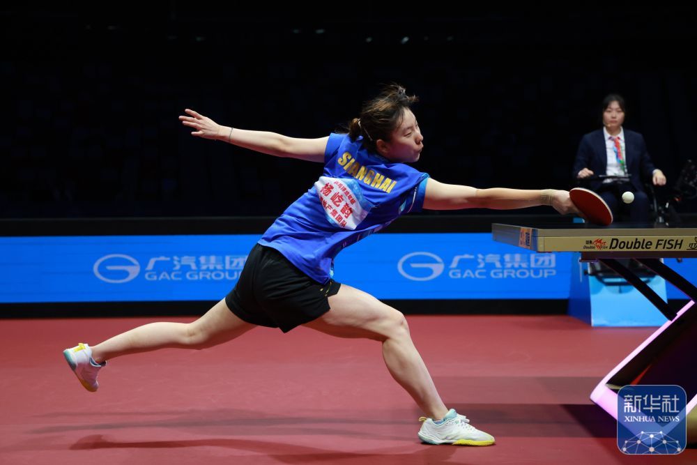 ↑ 上海队选手杨屹韵在比赛中回球,她3比1战胜黑龙江队选手车晓曦。新华社记者 梁旭 摄
