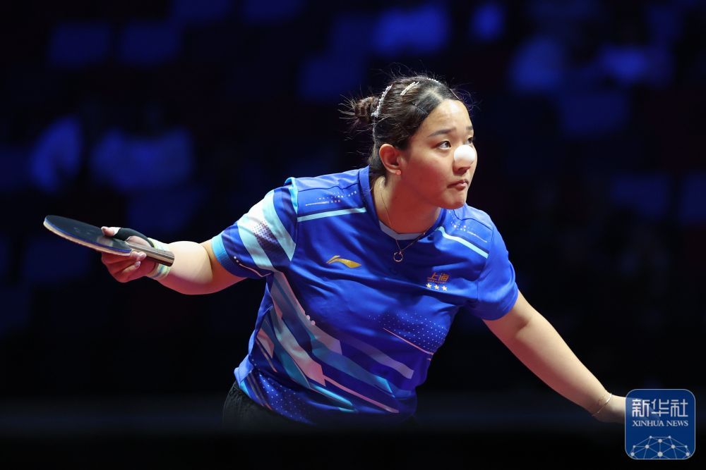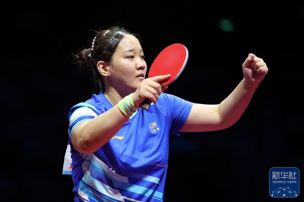 ↑ 上海队选手孙铭阳在比赛中,她3比2战胜黑龙江队选手范姝涵。新华社记者 刘续 摄