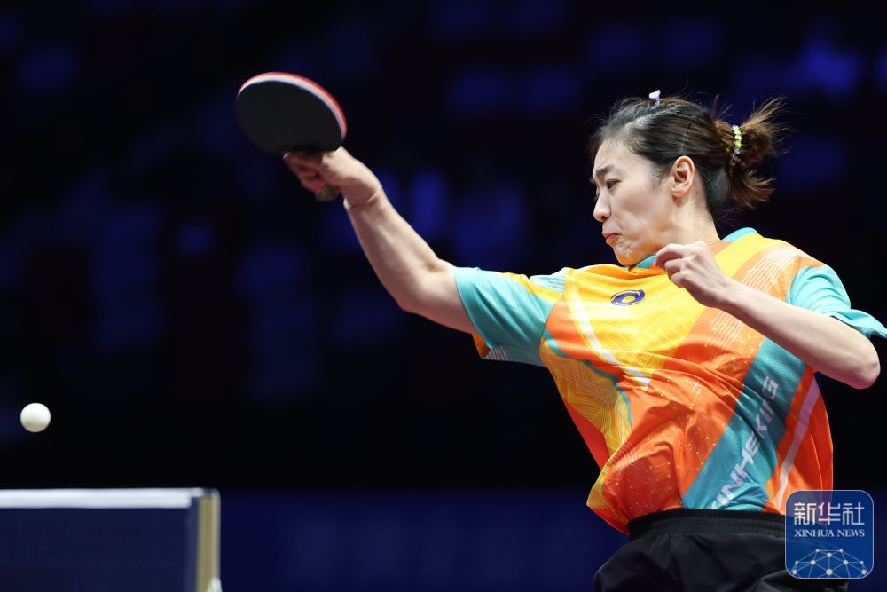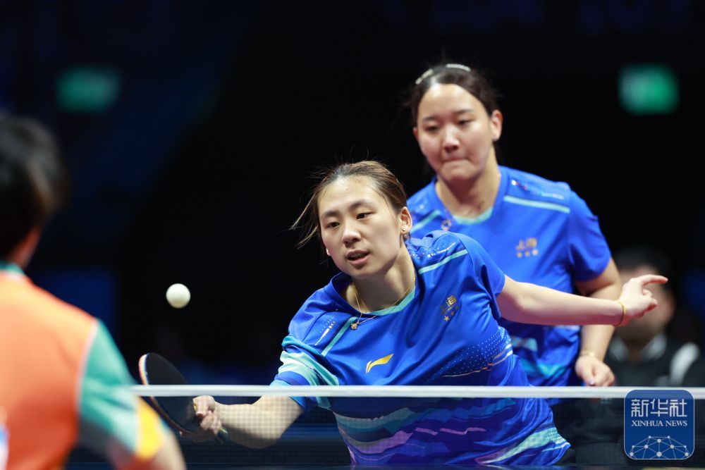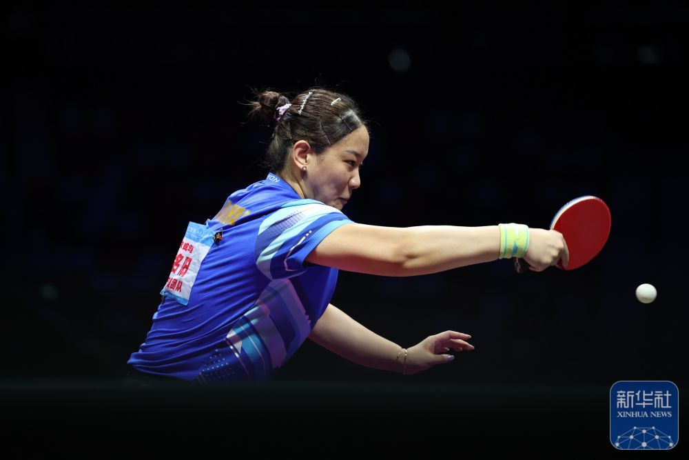 ↑ 上海队选手孙铭阳在比赛中回球,女团她3比2战胜黑龙江队选手范姝涵。体铜新华社记者 梁旭 摄
