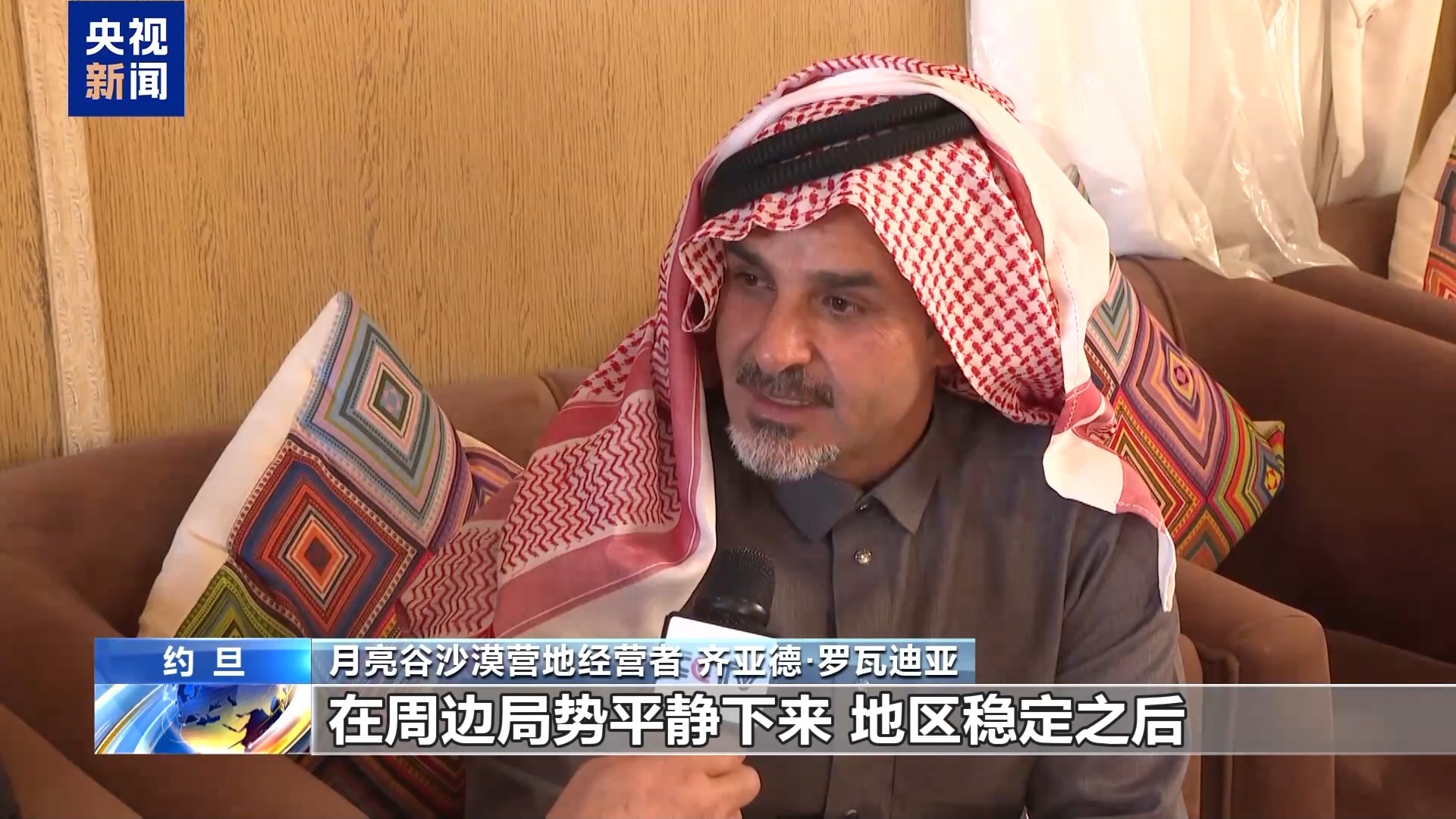 月亮谷沙漠营地经营者 齐亚德·罗瓦迪亚:我们的国家很值得一来,尽管地区局势曾一度紧张,但约旦一直是一个非常安全的国家,这一点值得被人们知道。我们希望今后情况继续向好,来到我们国家的游客人数可以不断增加。