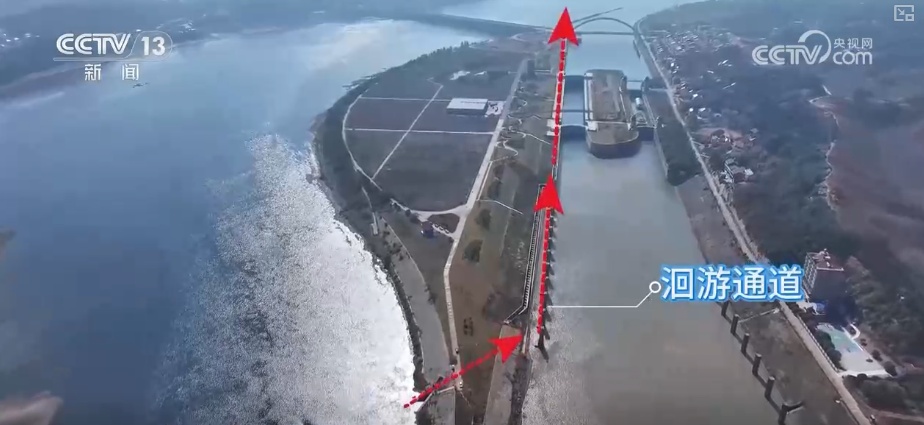 上世纪,因发展需要,两侧分别建设了水电站和船闸,鱼类洄游繁殖通道受阻,鱼类也曾一度减少。2019年,当地在中洲岛中挖出一条近1公里长的洄游通道。刚开始效果并不好,鱼类并不走这条洄游通道。