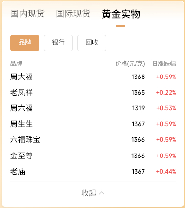 根据每天更新的价格,12月23日黄金实物价格如下: