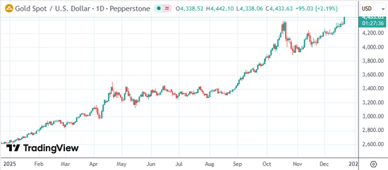 Pepperstone Group Ltd。策略师Dilin Wu表示:“今日的上涨,主要由围绕美联储降息预期的提前布局所推动,并在年底流动性偏薄的背景下被放大。”
