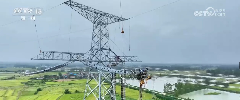 在安徽省六安市施工现场,90米的高空中,6根输电导线向着塔位匀速前进。随着所有导线平稳抵达预定位置,“陕电入皖”工程安徽段实现全线贯通。
