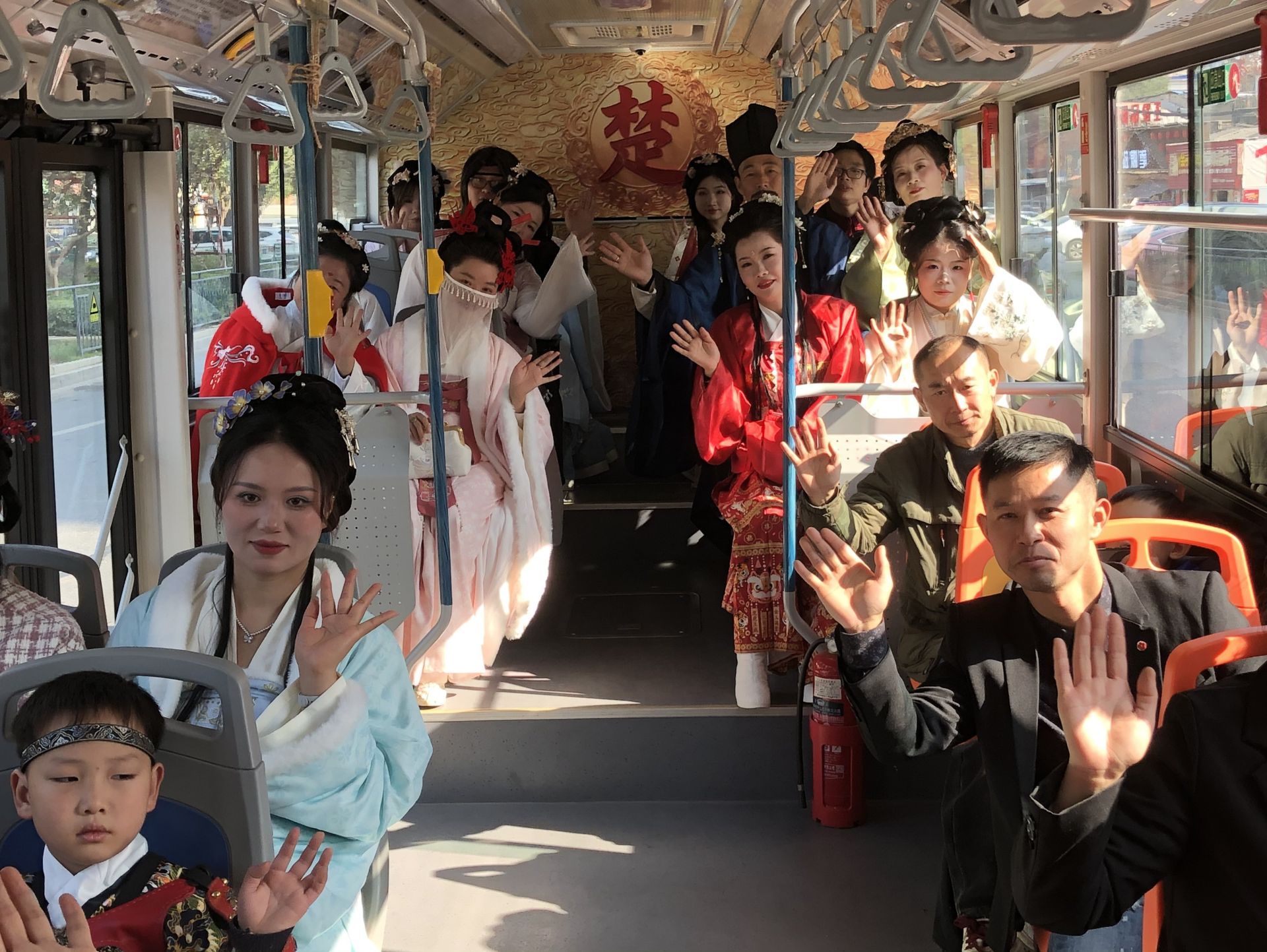 驾驶座上,身穿楚服的司机金乔笑容洋溢:“开着这样一辆有故事的公交车,我觉得自己不只是司机,更像一个移动的文化宣传员。能身体力行地传播青铜文化,特别有意义。”