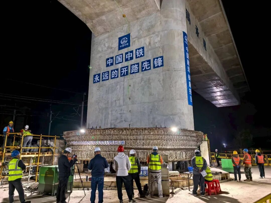 合武高铁塘埠口滠水特大桥转体施工现场。
