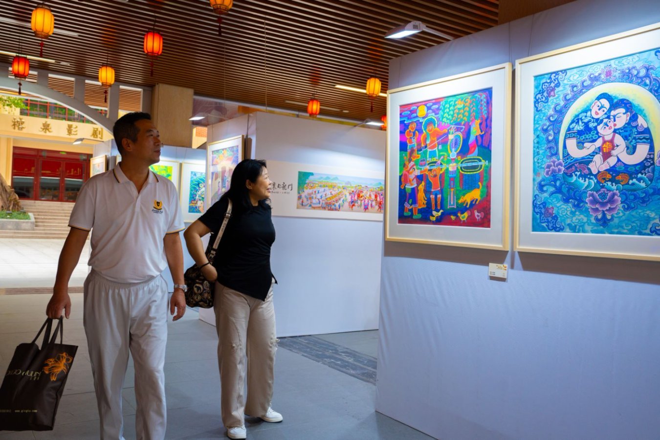 “龙门农民画以浓墨重彩定格生活本真、以质朴笔触传递乡土情怀。”龙门县文化馆工作人员表示,此次入选展览的画作超40副,这些作品既聚焦岭南农事节庆、渔乡市集等传统题材,又融入新时代乡村振兴的鲜活气息,将劳动的喜悦、丰收的盛景与对美好生活的向往跃然纸上,一展岭南民俗文化的生动画面。