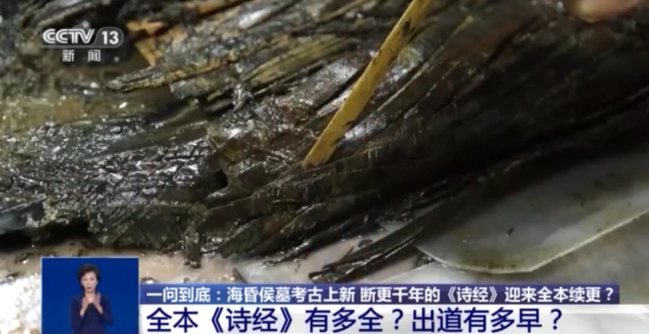 江西省文物考古研究院研究员 杨军:海昏侯墓当时随葬进去的《诗经》是全本《诗经》。随葬是一回事,保存下来又是另外一回事。目前它是我们看到的存字最多的《诗经》,这个是没问题的。